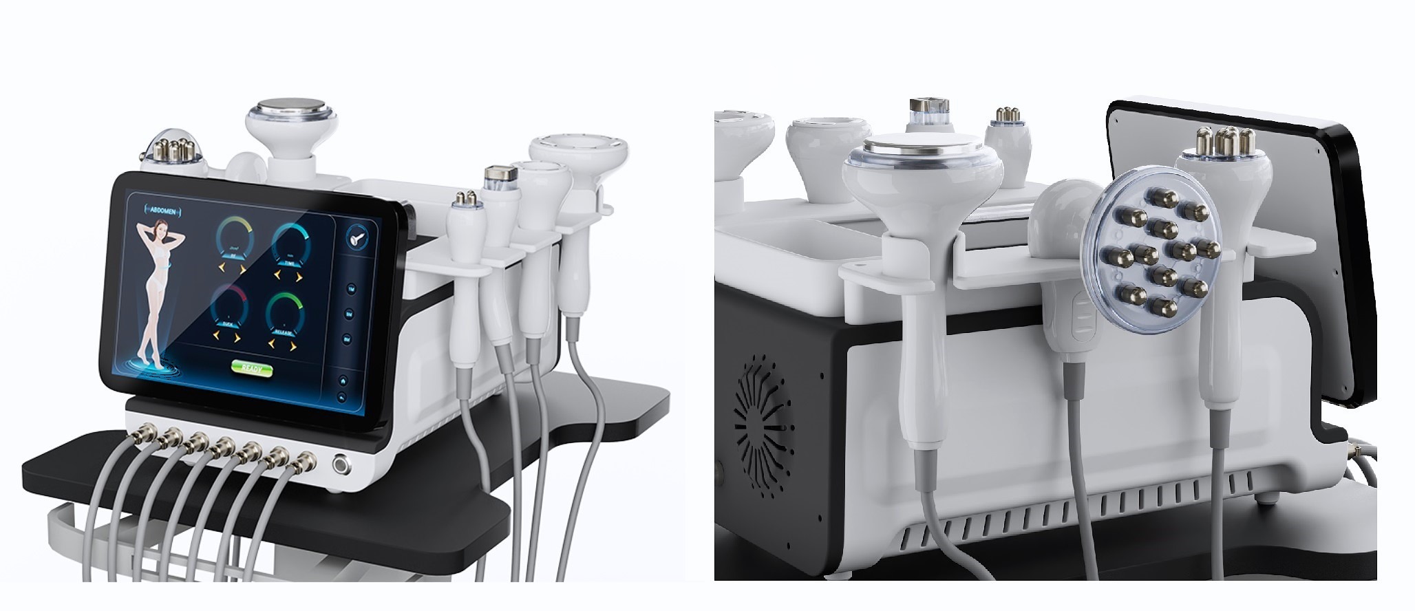 Dadurch wird das Gewebe gestrafft, während durch die Wärme des RF und der Diathermie das Fettvolumen abnimmt.