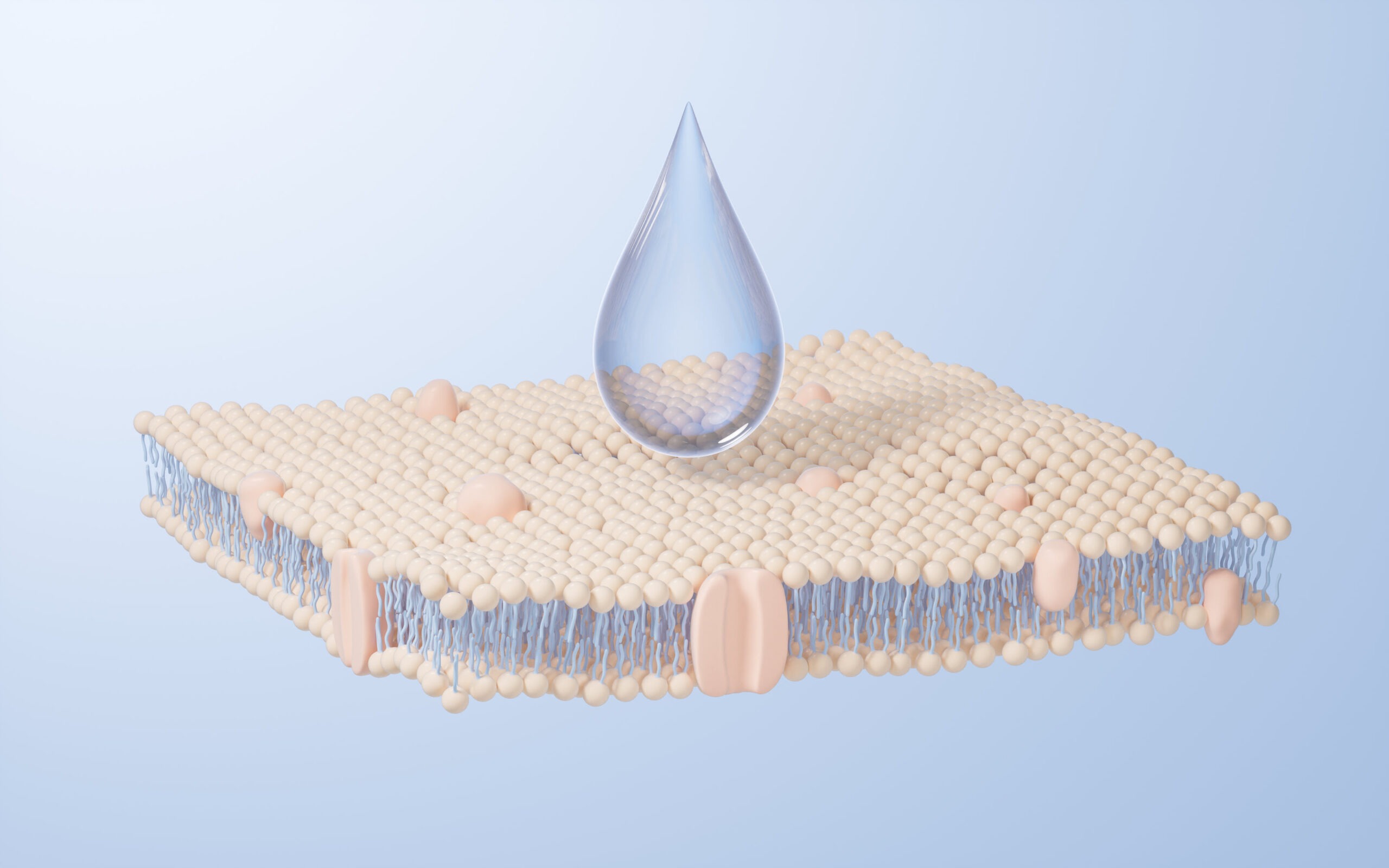 Hyaluronsäure hat die Fähigkeit, das Wasser an sich zu binden und es in der Haut zu behalten.